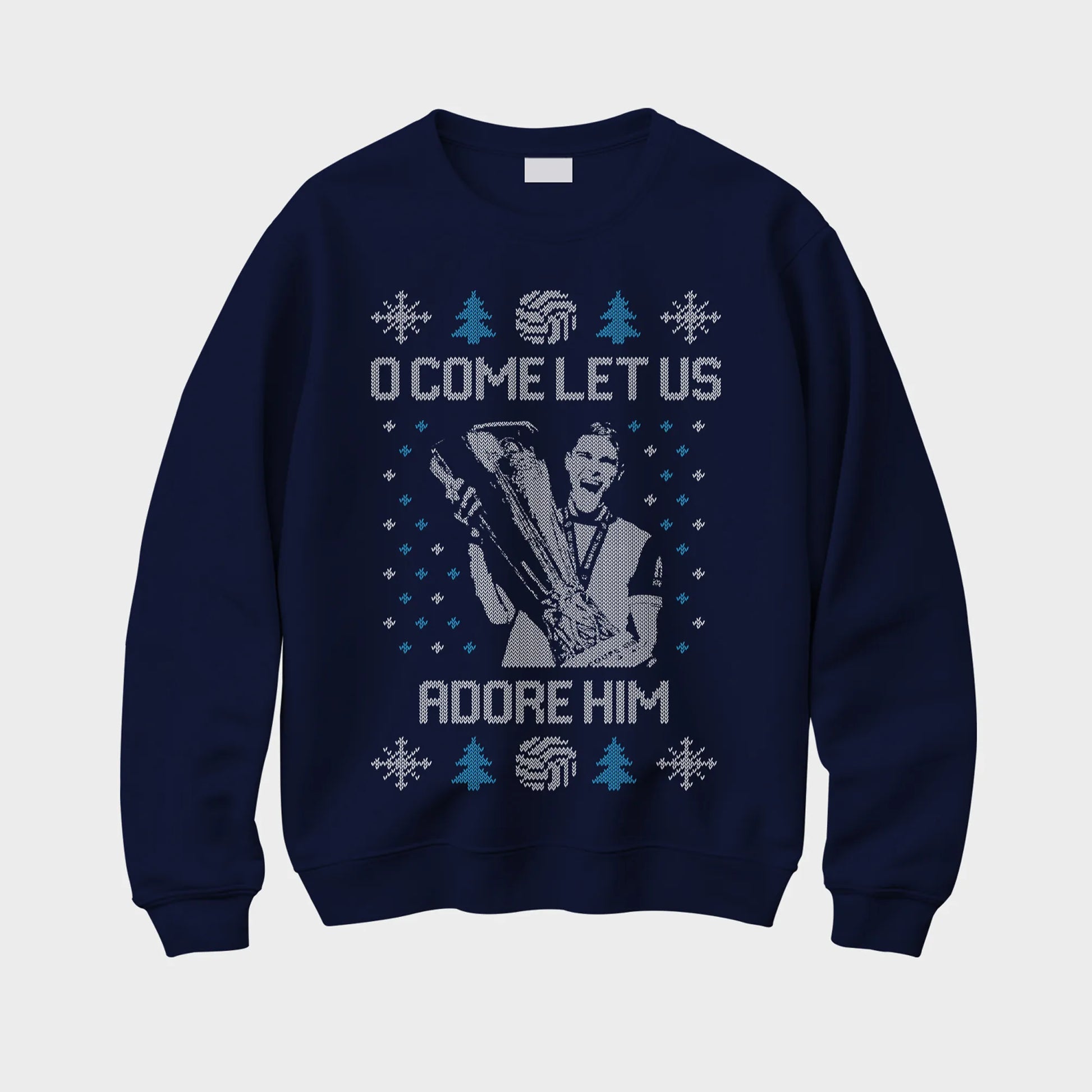 Bring pure Lilywhite joy (and a bit of European dreamland magic) to Christmas with our “O Come Let Us Adore Him – Van de Ven” Kids jumper. A cozy, mid-weight crew with a festive knit-effect graphic of Micky van de Ven hoisting the European trophy — the kind of scene Spurs fans will happily sing about all December long. 🎄💙