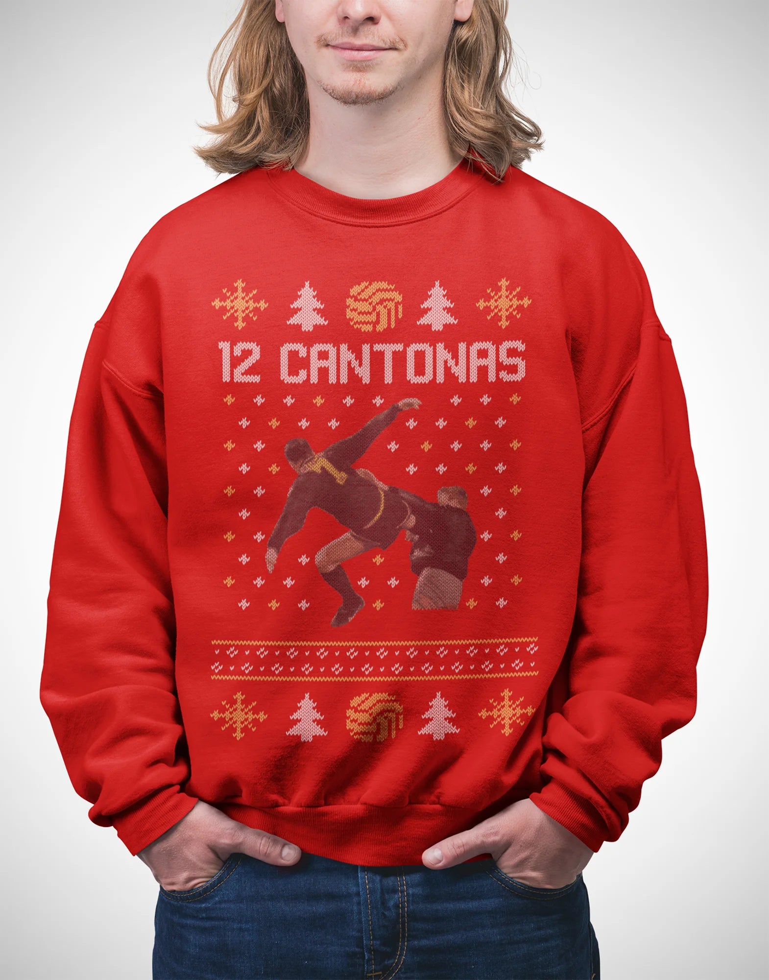 Bring legendary United energy to your festive season with our “12 Cantonas” sweater — a cheeky tribute to Eric Cantona and one of football’s most unforgettable moments. A cozy, mid-weight crew with a festive knit-effect graphic that captures the passion, power, and pure theatre of Old Trafford. 🎄⚽