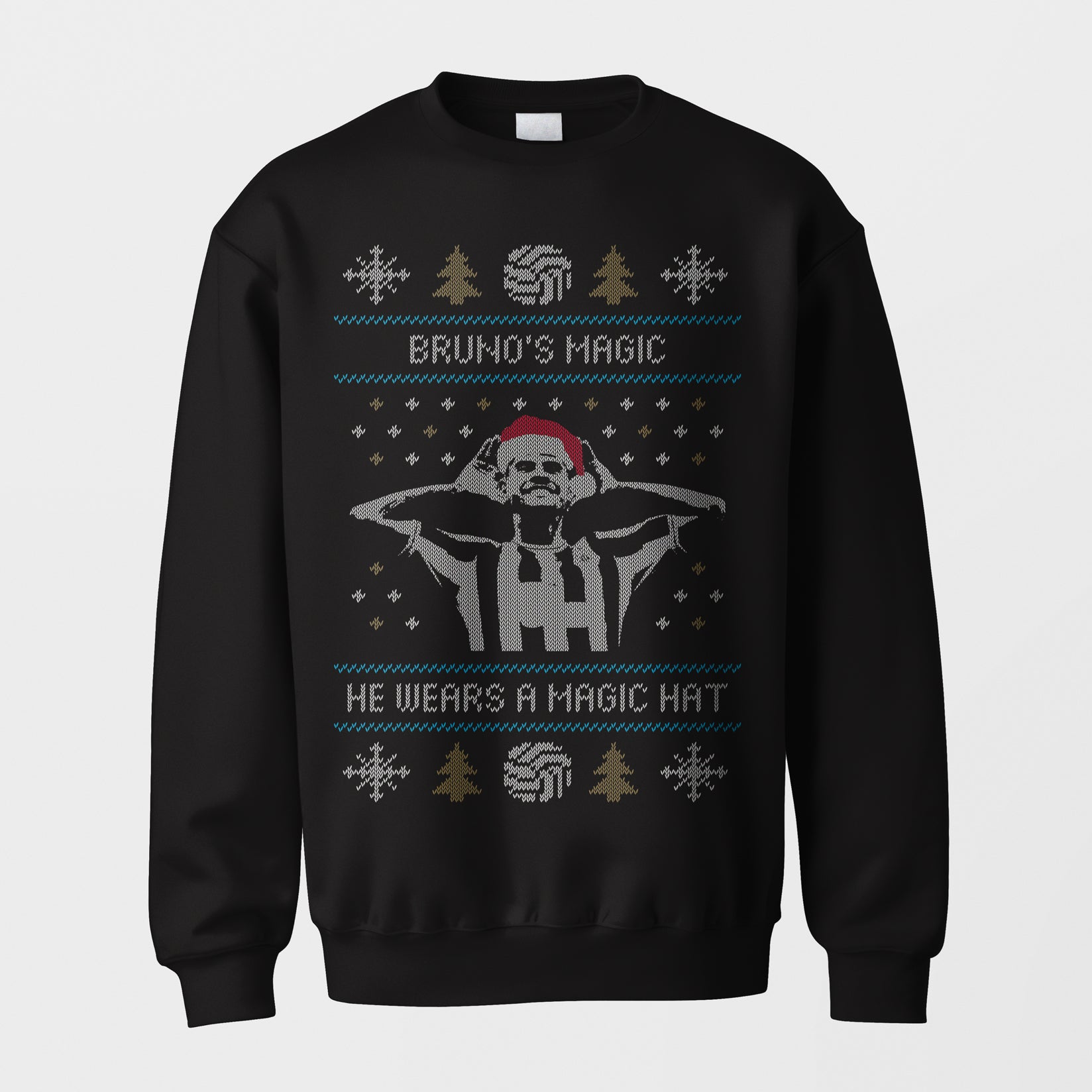 Bring black-and-white magic to your Christmas with our fan-favourite “Bruno’s Magic Hat” sweater. A cozy, mid-weight crew with a festive knit-effect graphic inspired by Bruno Guimarães — the heartbeat of Newcastle and the life of any festive celebration. 🎄⚽